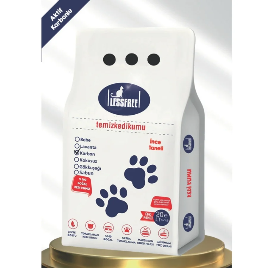 Less Free Aktif Karbonlu İnce Taneli Kedi Kumu, kokusuz ve naturel formu ile ev ortamında ferahlık sağlar. Kimyasal katkı içermeyen yapısı sayesinde kedinizin konforunu artırır.
